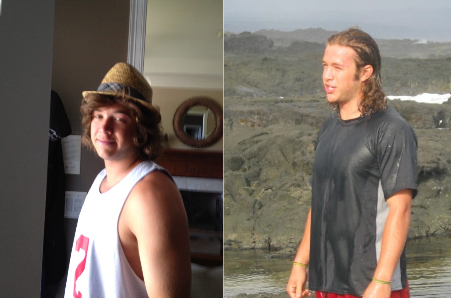 In that first image, I'm holding myself like someone carrying weight that isn't his to bear. Shoulders tight, smile forced, energy constricted. By the second photo, something has shifted. The emotion I'd been stuffing down for years had finally been released. My body looks free, natural, and at home in itself.